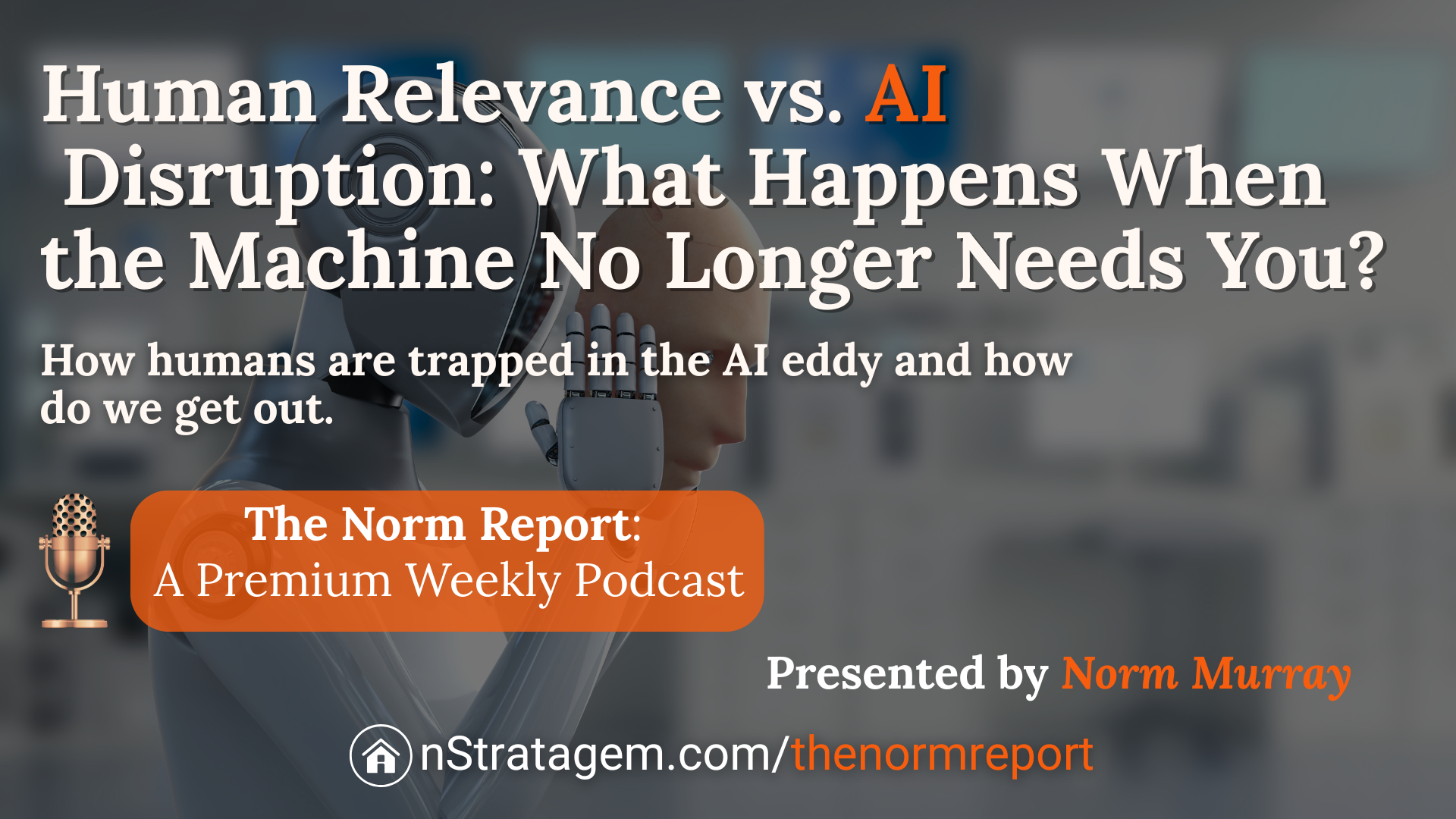 In this provocative episode of The Norm Report – Psycho-Technology Series, Norm Murray dissects the growing crisis of human relevance in an AI-dominated world. As algorithms accelerate and decision loops tighten, many find themselves caught in an invisible current, an AI eddy, spinning faster than their capacity to adapt.